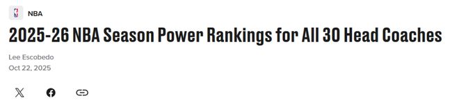 勇士隊科爾高居第一!在新賽季開打之際,美媒《bleacherreport》公布NBA現役30支主帥實力排名,其中火箭隊烏度卡第7,湖人隊雷迪克僅排第20位。