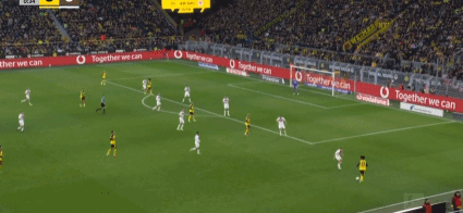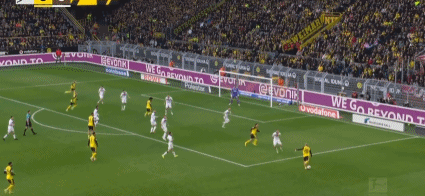 第45+1分鐘,阿德耶米突破傳中,布蘭特破門,多特1-0圣保利