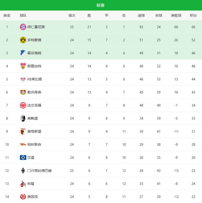 最終,拜仁4-1輕松取勝,不僅完成對(duì)門(mén)興的賽季雙殺,還豪取各項(xiàng)賽事6連勝。在積分榜上,南大王的領(lǐng)先優(yōu)勢(shì)已經(jīng)擴(kuò)大到14分,德甲冠軍幾乎沒(méi)有懸念。